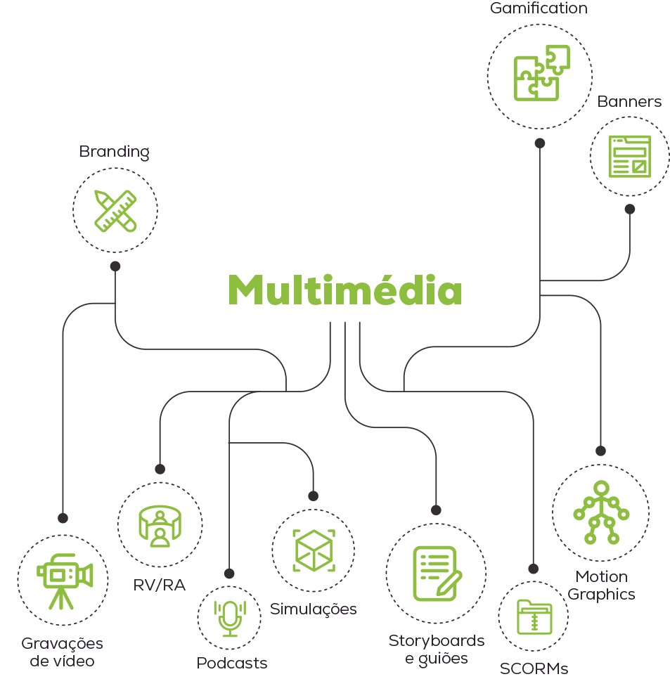 No desenvolvimento de cursos e-learning, utilizamos ferramentas digitais e recursos de IA para: