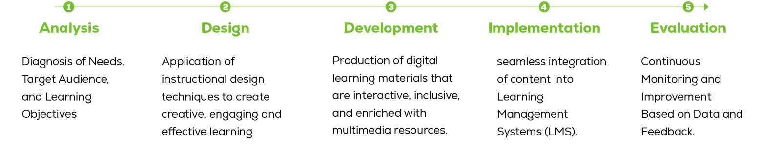 Our approach is based on the ADDIE methodology, which guarantees rigor, consistency, and a focus on results.
